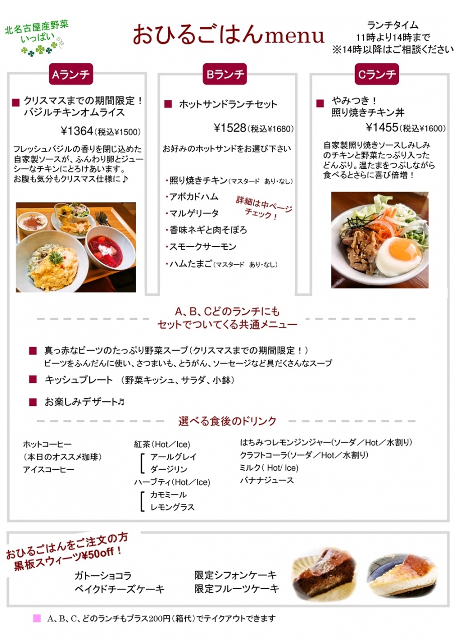 12月のおひるごはんのAセットはクリスマス25日までとなります。