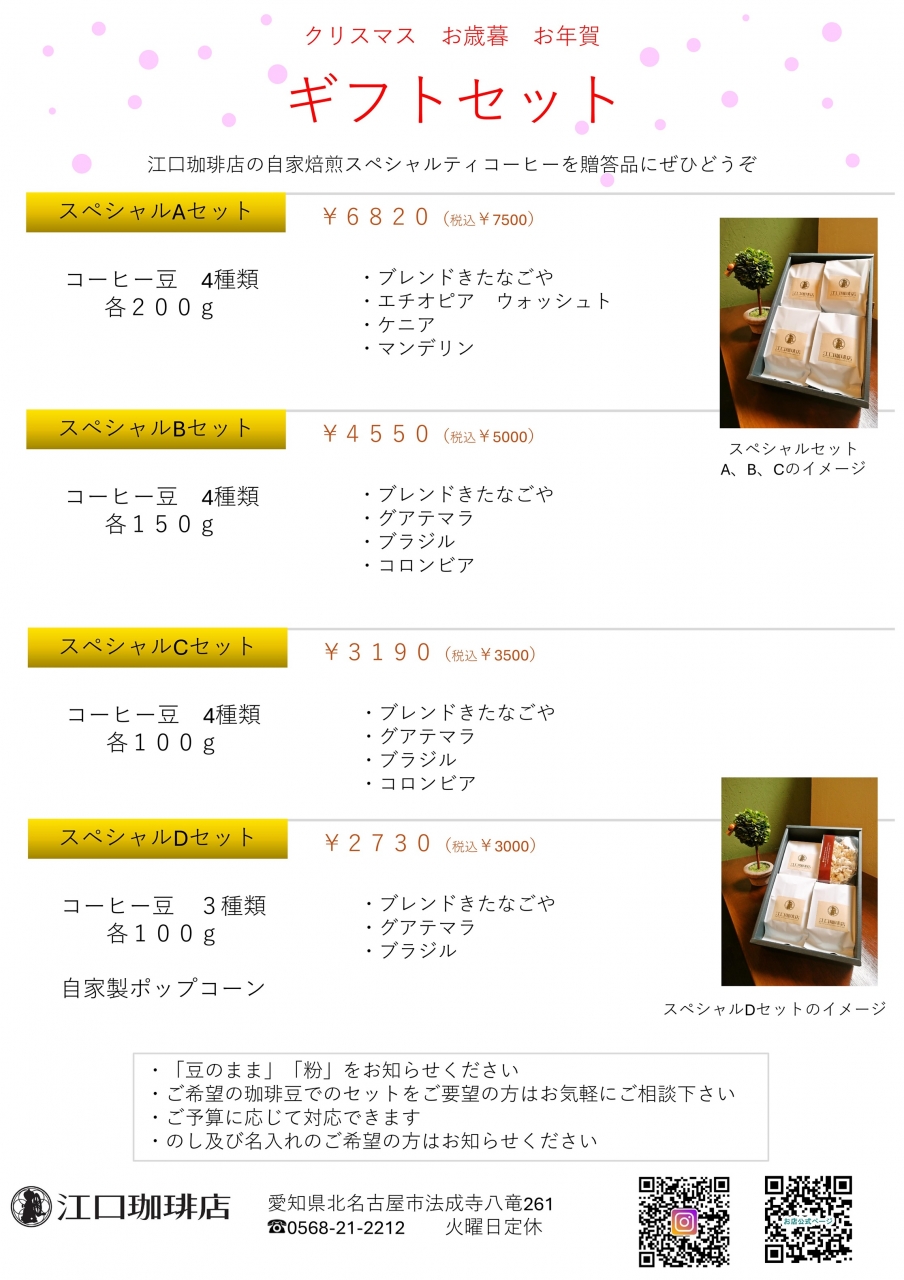 クリスマス、お歳暮、お年賀に美味しい珈琲をぜひどうぞ。